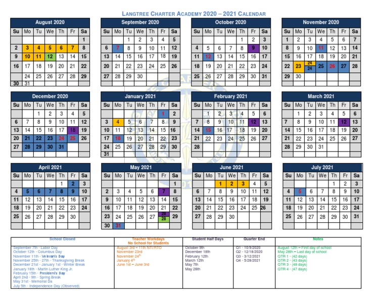 Langtree Charter Academy Calendar - In conclusion, printable calendars and templates are far more than simple scheduling tools. Calendar templates are now more innovative and specialized than ever, catering to niche requirements and user-specific goals. Event organizers rely heavily on printable calendar templates to manage complex schedules and coordinate multiple stakeholders. Many individuals use drawing templates as a form of stress relief, engaging in activities like coloring or sketching to unwind and relax. Printing only what is necessary minimizes paper and ink consumption, contributing to more sustainable practices. These customizable templates cater to specific niches, from planners designed for bloggers to calendars tailored for fitness coaches. Teachers use templates to create printable academic calendars that highlight important dates such as exams, holidays, and project deadlines. Moreover, the rise of virtual collaboration tools has led to the creation of collaborative printable calendars, making it easier for teams to share schedules, deadlines, and events in real-time. The availability of various styles ensures that users can find options that resonate with their preferences or match their project’s theme. Software like Microsoft Office, Google Workspace, and online graphic design platforms allow even beginners to experiment with creating their designs.