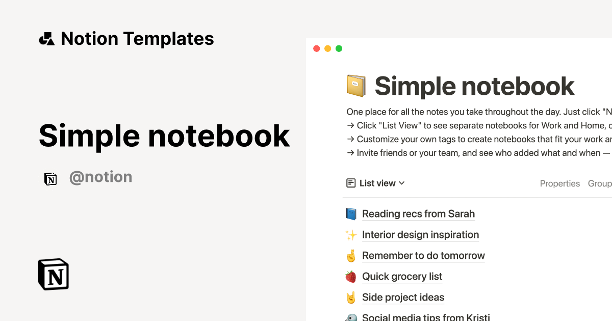 Notion Notebook Template - As the need for customized, easily accessible, and efficient organizational tools continues to grow, printable templates and calendars will undoubtedly remain a critical resource. With constant advancements in technology and design, these tools are set to become even more personalized, adaptable, and integrated into various aspects of modern life. These templates make the process of creating a printable calendar enjoyable and interactive. Many creators sell their designs online as downloadable templates, turning their artistic skills into a source of income. As technology continues to evolve and customization options expand, the role of calendars in helping people manage their time and achieve their goals will only grow. Printable time-blocking calendar templates enable users to visualize their daily schedules, ensuring they balance work, personal time, and leisure effectively. This structured approach helps mitigate procrastination, enhance focus, and improve overall time management. Similarly, bloggers and influencers rely on content calendars to schedule posts, track engagement metrics, and align their efforts with key events or holidays. Parents, for instance, can print out family calendars to keep track of important family events, doctor appointments, school activities, and extracurricular commitments. Want to create a calendar for your entire family or team? No problem! Simply print out multiple copies of your template and share them with your loved ones or colleagues.