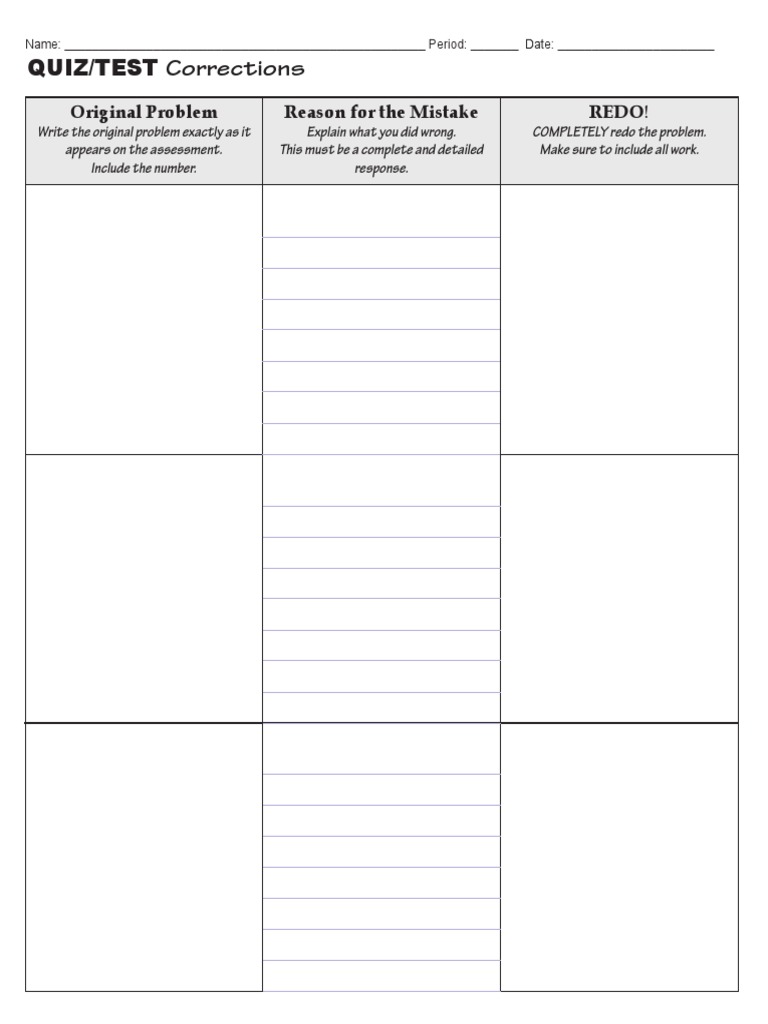 Quiz Corrections Template - This DIY approach highlights the accessibility and versatility of printable templates, as they empower individuals to create professional-looking designs from the comfort of their homes. As technology advances and new design trends emerge, printable templates will undoubtedly remain a vital resource for fostering creativity, enhancing organization, and enriching daily experiences. As environmental awareness grows, there is also a push toward eco-friendly practices in the creation and use of printable templates. For a fraction of the price of store-bought planners or art supplies, users can access an extensive array of templates that cater to virtually every need. This hybrid approach ensures seamless communication and time management, both online and offline. These calendars serve a dual purpose: they provide practical value to recipients while keeping the business top-of-mind throughout the year. Augmented reality may also enhance the way users interact with printed calendars, offering features like virtual overlays of events or reminders that appear when viewed through a smartphone. These innovations will further enhance the appeal and functionality of printable templates, cementing their place as indispensable resources in both personal and professional spheres. Online platforms now offer tools that enable users to design their own templates from scratch, providing greater control over the final product. With their flexibility, cost-effectiveness, and endless possibilities, it's no wonder that printable templates have become a staple in many homes and offices around the world.