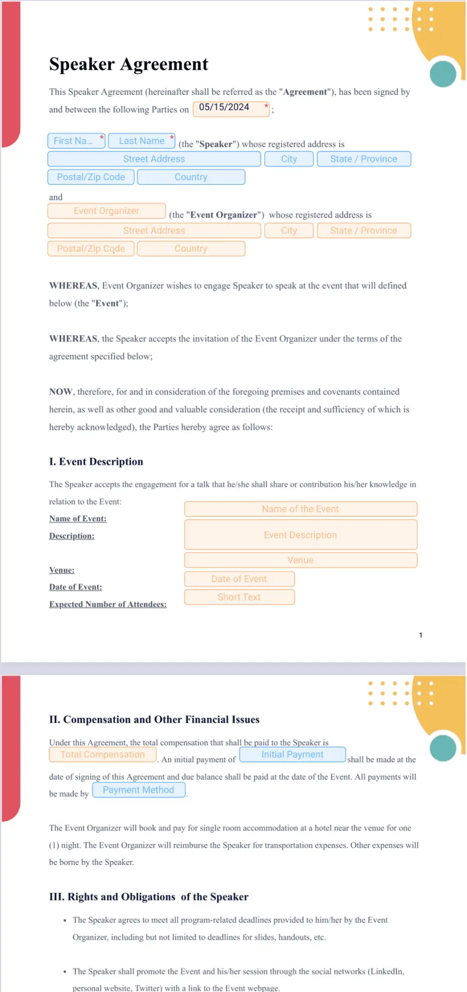 Speaker Agreement Template - Individuals are increasingly looking for ways to reflect their unique tastes and styles, and printable templates offer the perfect medium to do so. This seamless integration of analog and digital workflows showcases the versatility of printable templates in modern art practices. One of the most exciting developments in the realm of printables and templates is the integration of AI-driven design tools. The concept of time management continues to evolve as users increasingly seek efficiency in their personal and professional lives. Designers and small businesses now share their creations on platforms like Pinterest, Instagram, and Etsy, where users can browse and download templates that suit their preferences. Another advantage of printable calendar templates is their ability to be easily shared or distributed. Many creators now offer eco-friendly designs optimized for minimal ink and paper usage. As technology advances and new design trends emerge, printable templates will undoubtedly remain a vital resource for fostering creativity, enhancing organization, and enriching daily experiences. The enduring appeal of printable templates and calendars lies in their simplicity, adaptability, and ability to meet the diverse needs of users in an ever-changing world. The educational potential of printable templates continues to expand as well.